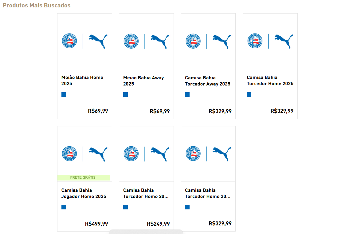 Prestes ao lançamento oficial da parceria entre Bahia e PUMA, o site oficial da marca alemã deixou escapar os valores que custarão os novos uniformes e produtos do Tricolor Baiano feitos pela distribuidora.