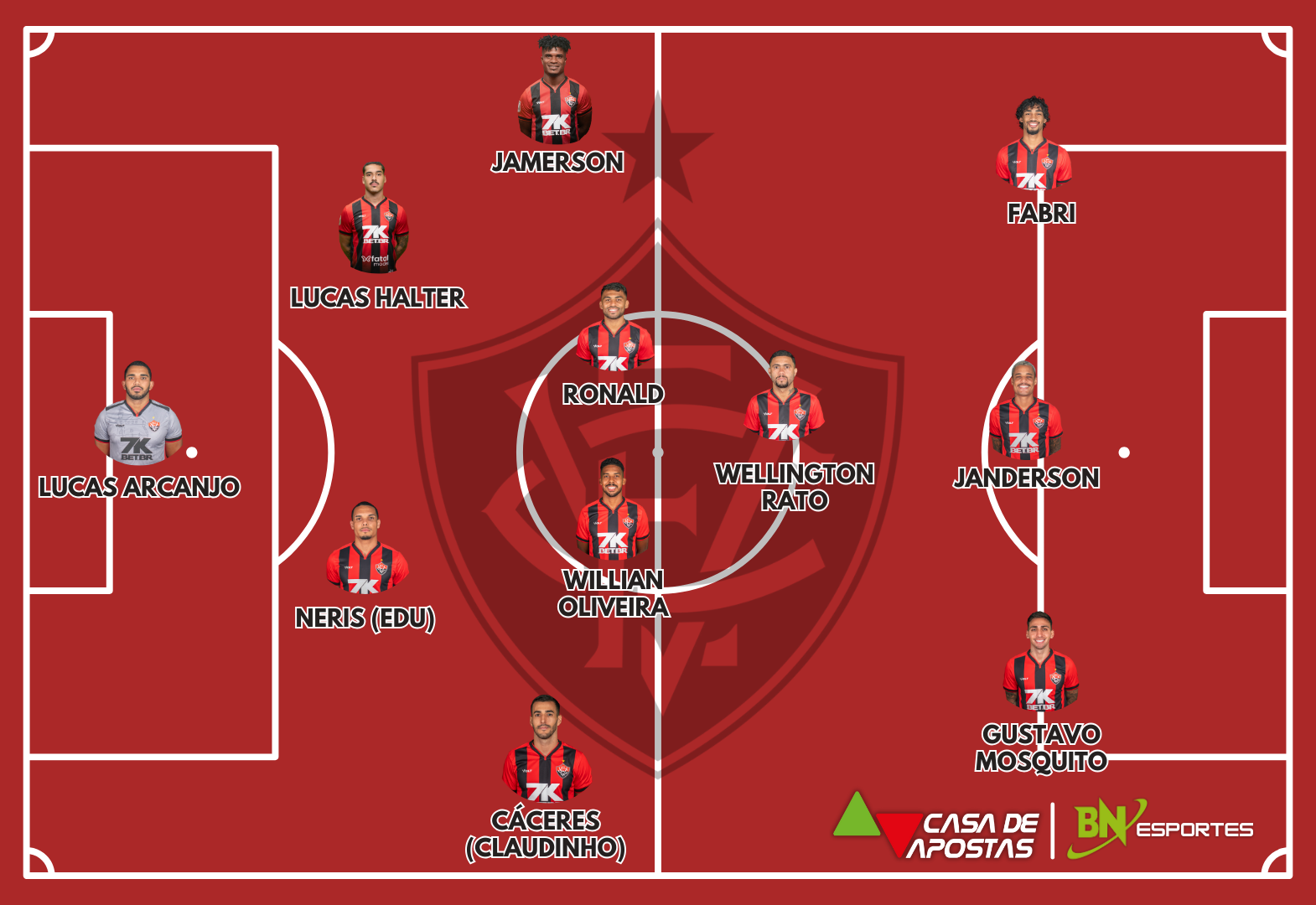 Vitória: Lucas Arcanjo; Raúl Cáceres (Claudinho), Neris (Edu), Lucas Halter e Jamerson; Ronald, Willian Oliveira e Wellington Rato; Gustavo Mosquito, Fabri e Janderson. Técnico: Thiago Carpini.