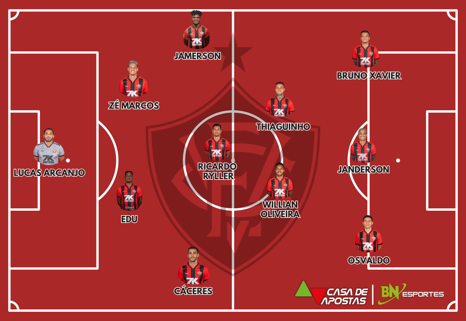 Vitória: Lucas Arcanjo; Cáceres, Edu, Zé Marcos e Jamerson; Ricardo Ryller, Willian Oliveira e Thiaguinho; Osvaldo, Bruno Xavier e Janderson. Técnico: Thiago Carpini.
